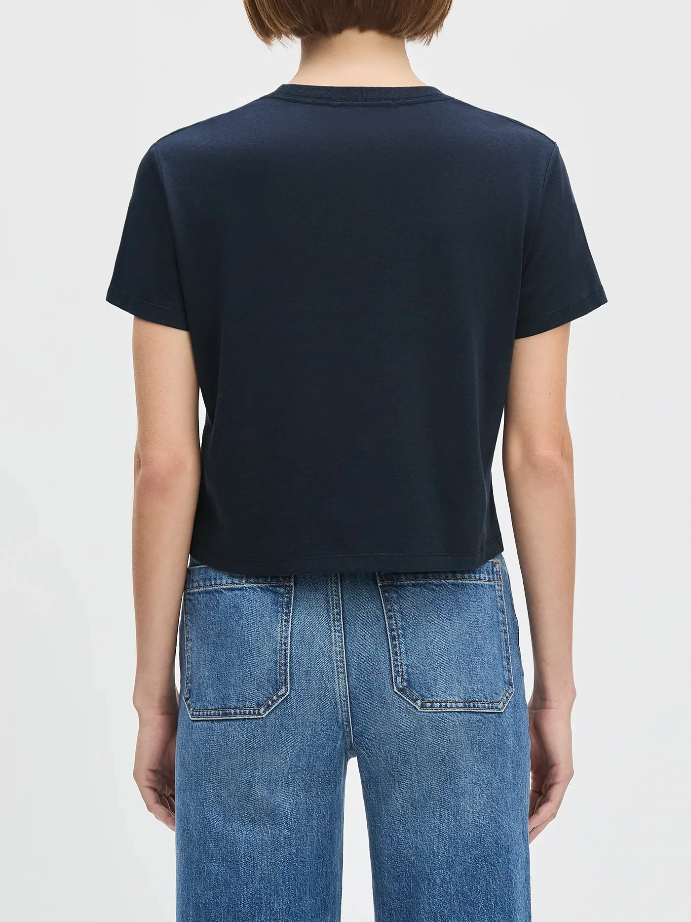 So there's no confusion. This classic cut tee says it all--simply styled in a tri-blend cotton with a cropped fit. Wear it to run errands, style it for a Friday night and rock it at the next family reunion.