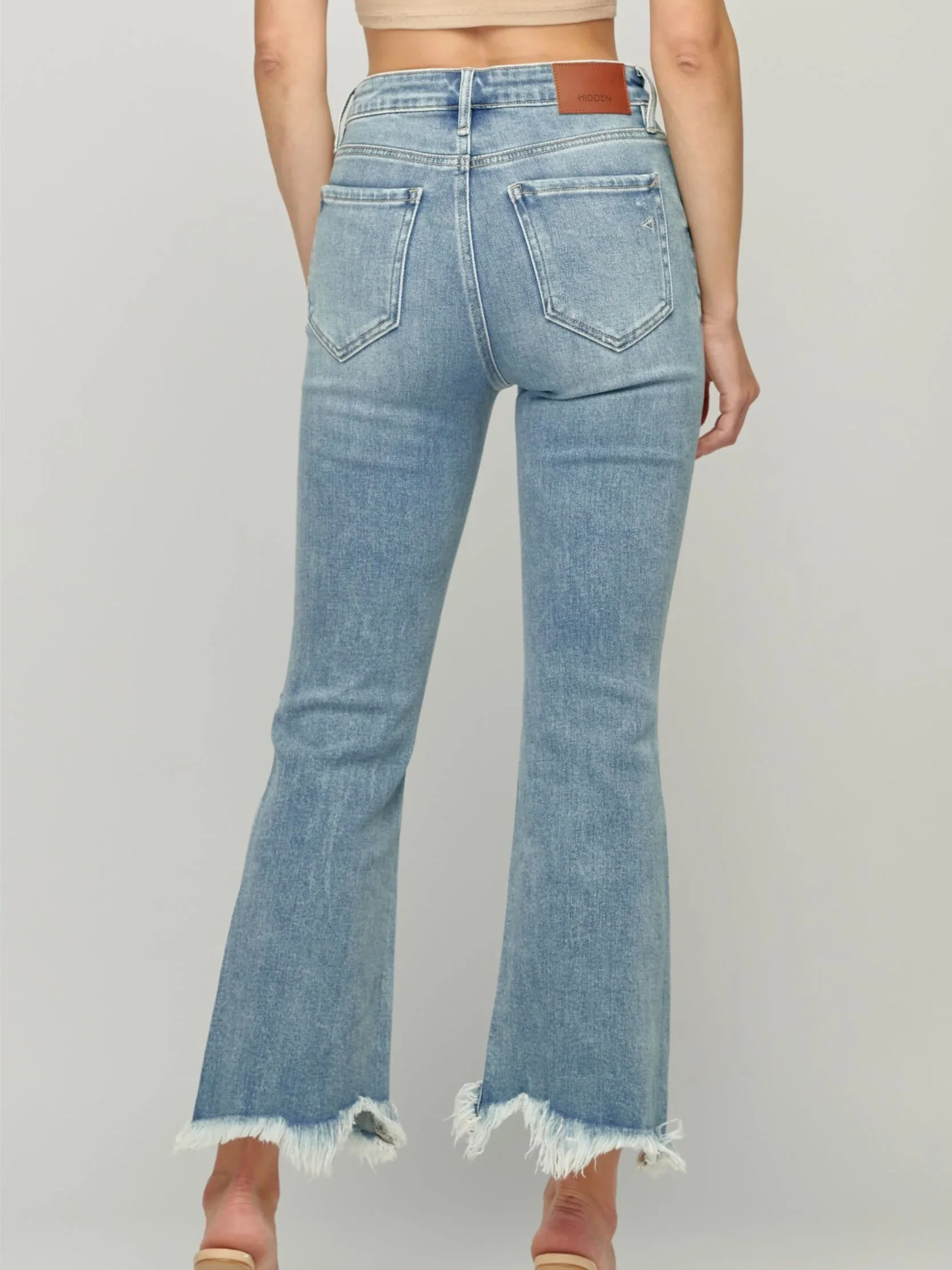 These trendy & stylish jeans are a must-have addition to your closet! Our High Waist Super Fray Crop Flare Jeans are great for any season & can make any outfit look amazing! Style with a sweater or blouse, gold jewelry & a handbag to complete the cute look!